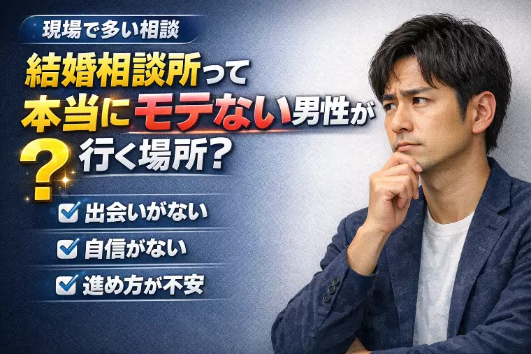 はじめに|そのイメージ、どこから来ましたか?「結婚相談所って、正直モテない男が行く場所ですよね?」これは、鹿行地区で30代後半男性と話していると、かなりの確率で出てくる本音です。口には出さなくても、まだそこまで追い込まれていない相談所に行ったら“負け”な気がするできればアプリで何とかしたいそう感じて、足を止めている男性は少なくありません。ですが、現場で実際に相談を受けている立場から言うと、このイメージと実態には、かなり大きなズレがあります。この記事では、「結婚相談所=モテない男性の最終手段」という思い込みが、なぜ生まれやすいのか、そして実際に相談に来ている男性たちはどんな人なのかを、現実重視でお話しします。なぜ「モテない男性の場所」というイメージが残っているのかまず、この誤解が生まれる理由を整理しましょう。①昔の結婚相談所のイメージが強く残っている一昔前の結婚相談所は、年齢層が高い条件重視堅苦しいお見合いという印象がありました。今でもそのイメージだけが残り、実態がアップデートされていないケースが非常に多いのです。②男性のプライドと相性が悪い言葉「相談所」という言葉自体が、自分で何とかできない人誰かに世話を焼いてもらう人そんな印象を連想させます。特に30代後半男性は、仕事では自立している分、婚活で人を頼ることに抵抗を感じやすい。その心理が「行ったら終わり」という極端なイメージを作ってしまいます。③比較対象が「理想化されたアプリ」になっているマッチングアプリは、気軽自由自分のペースというメリットが強調されがちです。その結果、「それ以外=不利な選択肢」と無意識に比較してしまう男性も多いのが現実です。実際に結婚相談所に来ている男性はどんな人?ここからが本題です。現場で多い相談内容を、率直にお伝えします。①「普通に生きてきた30代後半男性」相談に来る男性の多くは、正社員で安定した仕事特別モテるわけではないが恋愛経験はある清潔感もあり、会話も普通いわゆる**「ごく普通の男性」**です。決して、極端に条件が悪いわけではありません。②アプリを一通りやって、違和感を覚えた人よくある相談は、マッチはするけど結婚につながらない相手の温度感が読めない時間だけが過ぎていく「このまま続けても同じ気がする」そう感じて、現実的な選択肢として相談に来ています。③本気で結婚を考え始めた人最大の共通点は、これです。「そろそろ本気で結婚を考えたい」年齢、周囲の変化、将来の生活。感情ではなく、現実を見て判断している男性がほとんどです。結婚相談所でうまくいく男性の考え方相談所で結果が出やすい男性には、共通したスタンスがあります。①「向き不向き」を冷静に判断している彼らは、アプリがダメだから来たのではありません。「今の自分には、どの方法が一番合理的か」これを基準に選んでいます。②婚活を感情ではなく“仕組み”で考えている誰とどんな前提でどう進めるかこれを整理できる環境を選んでいるだけです。③早めに「一人でやらない選択」をしている長引く男性ほど、「もう少し一人で頑張ろう」を繰り返します。うまくいく男性は、早い段階で第三者の視点を入れる決断をしています。鹿行地区では、この選択がより重要になる鹿行地区は、出会いの母数が少ない男性比率が高い選択肢が限られやすいこの環境では、遠回りをしないこと自体が大きな武器になります。「まだ大丈夫」と思っているうちに、同じ場所をぐるぐる回ってしまう男性も少なくありません。行動喚起|「行くかどうか」より、まずは整理する結婚相談所は、「入会を決める場所」ではありません。本来は、今の婚活が合っているのかを整理する場所です。自分は今、どこでつまずいているのかこのまま続けた場合、どうなりそうか別の選択肢は現実的かこれを冷静に確認するだけでも、婚活の見え方は大きく変わります。「モテないから行く場所」ではなく、消耗しないために選ぶ場所。そう捉え直すだけで、一歩がぐっと現実的になるはずです。まずは、今の状況を言葉にするところから始めてみてください。