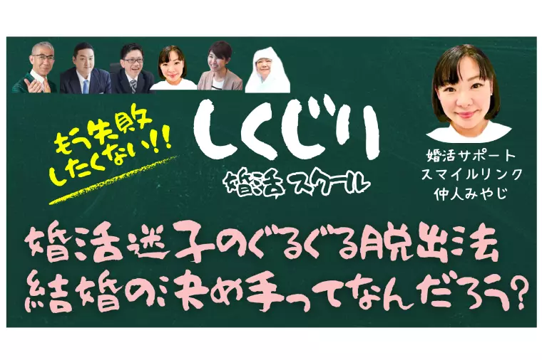 こんにちは。婚活サポートスマイルリンクの仲人みやじです。実はこのたび、“婚活迷子さんのための気づき”をお届けするYouTube「しくじり婚活スクール」を始めました。私自身、かつて10年近く婚活迷子だった過去があります。だからこそ、この経験が誰かの役に立つなら…という思いで、動画を作り始めました。30歳から婚活をスタートした私は、お見合い→仮交際→なんか違う→ふり出しに戻るというループを延々と繰り返していました。あなたも、「悪くはないけど、この人なのかな…?」そんな迷いを感じたこと、ありませんか?当時の私は、まさにそれの連続でした。出会いはあっても“気持ちが決まらない”。そして今ならわかります。その理由は――「自分の心の整理ができていなかった」これに尽きます。そんな私に、人生の転機が訪れました。結婚を考え始めて受けたブライダルチェックで、体のケアが必要な状況が見つかったのです。そこからしばらくは治療と休息の期間。心と体が少し癒えた頃、ようやく自分を深く見つめる時間が持てました。そして思ったのです。「私は、どんな自分で生きたいんだろう?」この問いが、婚活の景色をまるごと変えました。心を整えたあとに始めた婚活は、以前とはまったく違いました。・“選ばれるための婚活”をやめた・自分が「会いたい」と思う人に申し込んだ・条件より心が穏やかでいられる相手を大切にしたその結果、私は「自然体で笑っていられる人」に惹かれていることに気づきました。ちなみに夫とは、休日にカフェで過ごすときの空気がとても心地よく、「この感じ、ずっと続く気がする」と直感したのを覚えています。あなたは、どんな時に“自然体の自分”でいられますか?このテーマは奥が深いため、YouTubeの収録では他の仲人さんたちにも「結婚の決め手」をシェアしていただきました。・ご家族との空気感で「安心感」が決め手になった方・「迷わない」と決めた後、努力で育てていくと話す方・価値観が違っても話し合える“心地よさ”が決め手だった方など、それぞれのリアルな声が集まりました。安心感・尊敬・会話のテンポ・価値観の共有結婚の決め手は、人の数だけあると改めて感じました。【しくじり婚活スクール#005】婚活迷子のぐるぐる脱出法〜結婚の決め手ってなんだろう?〜※動画では、実際の仲人同士の掛け合いの中でよりリアルで深い話をしています。ぜひご覧くださいね。私が最終的にたどり着いた答えはとてもシンプルでした。どんな関係なら、自分がごきげんでいられる?結婚は“理想を埋める相手”を探すものではなく、“自然体の自分でいられる相手”を見つける旅。そしてそのためには、あなたの心の中の「軸」を見つめることが大切です。もし今、迷いがあるならこの3つの問いを自分に投げてみてください。①一緒にいるときの自分は好きですか?②無理して背伸びしていませんか?③5年後もこの人と自然に笑っている姿が想像できますか?この3つに“はい”が増えていくお相手こそ、あなたにとっての結婚の決め手かもしれません。婚活は、誰かと戦うものではありません。自分を整えて、自分の幸せのかたちを見つめる時間です。今回の内容があなたの気づきにつながれば嬉しいです。婚活サポートスマイルリンクでは、「自分に合う結婚の決め手」を一緒に探すサポートも行っています。どうぞ、お気軽にご相談くださいね!公式サイトはこちら