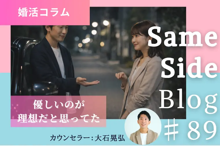 婚活というマラソンに真剣に取り組む人を、最後まで応援したい。結婚相談所SameSide代表カウンセラーの大石晃弘です。婚活を始めるとき、「こんな人がいい」「こういう人と結婚したい」そんな理想を持つ方は多いと思います。例えば、「気遣いがある方がいいな」そんな風に思っていたとしても、実際に出会っていく中で、「ちょっと先回りの配慮が息苦しい」と感じてしまうこともあります。そこから、「あれ?本当は、もう少し大雑把でもいいから、大らかで優しさのある人の方が好きなのかもしれない」そんな気付きが生まれることもあります。理想は、変わっていいものです。むしろ、実際に人と向き合ったからこそ見えてきた大切な気付きとも言えます。そして、その違和感や心の動きは、あなたの中にある「本音」に近づいているサインでもあります。婚活では、・年収・年齢・見た目・性格など、分かりやすい条件に目が向きがちです。もちろんそれも大切ですが、本当に大切なのは「一緒にいてどう感じるか」という感覚です。例えば、・どんな時に居心地がいいと感じるのか・どんな関係だと無理なくいられるのかこうした感覚を、少しずつ言葉にしていくこと。その積み重ねが、あなたの自分軸を整えていくプロセスになっていきます。婚活をしていると、「これが正解」「こういう人がいい」そんな情報に触れる機会も多くなります。でも、誰かの正解に合わせ続けてしまうと、自分の本音が見えなくなることもあります。だからこそ、自分が感じた違和感や安心感を丁寧に拾っていくことが大切です。正解をなぞるのではなく、自分の感覚から関係を選んでいく。それがSameSideの考える婚活です。理想は、最初に決めたまま変えてはいけないものではありません。むしろ、人と向き合ったからこそ見えてくる変化こそが、本音に近づいている証です。その気付きの積み重ねが、あなたにとっての「心地よい関係」を作っていきます。SNSや周囲の声ではなく、自分の感じた違和感や安心感を大切にしながら、少しずつ整えていく婚活を。💌ブログのご感想や、「こんなテーマで読んでみたい」というリクエストは、ぜひ公式LINEへお寄せ下さい。IBJブログの感想を送ってくださった方限定で、ささやかな特典もご用意しています😊これから活動を始めようか迷っている方が、少し一歩を踏み出しやすくなる内容です。「ちょっと気になる」くらいの温度で大丈夫です✨どうぞお気軽にメッセージを頂ければ嬉しいです。🏢弊社のことをもっと知ってみたい方は、ぜひ他のブログや公式HPもご覧ください✨👉 https://sameside0406.com/