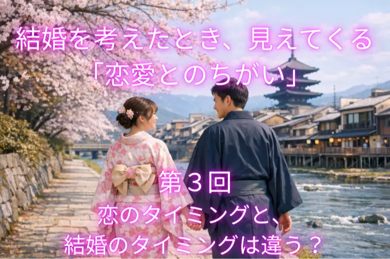 第3回:「恋のタイミングと、結婚のタイミングは違う」―「好き」の勢いと、「決断」のタイミングを分けて考える―恋人とはうまくいっていたのに、結婚の話をしたら急に距離を置かれた長く付き合っているのに、結婚の話になると「まだ早い」と言われる自分は結婚したいのに、相手は「今は考えられない」と言うこうしたすれ違いに、心が疲れてしまった経験はありませんか?それは、恋愛と結婚の「タイミング」が異なることに原因があるのかもしれません。恋愛は、感情が動いた瞬間に始まります。「この人、素敵だな」「もっと知りたい」そんな気持ちが高まったとき、恋が始まる。でも、結婚は違います。結婚は、人生の設計や価値観、環境が整ったときに決断されるものです。このように、結婚には「現実的な準備」が必要であり、感情だけでは動かせない事情があることも多いのです。恋愛関係がうまくいっていても、結婚に対する温度差やタイミングのズレがあると、関係が停滞してしまいます。このズレが続くと、不安や不満が積み重なり、やがて関係そのものが終わってしまうこともあります。「相手がその気になるまで待とう」「いつか自然に結婚の話が出るはず」そう思って時間だけが過ぎていくこと、ありませんか?でも、タイミングは「待つ」ものではなく、「整える」ものです。こうした問いに向き合うことで、「結婚に向けた出会い方」や「相手との関係の築き方」が変わってきます。結婚相談所の良さは、自分の人生設計に合わせて動けることにもあります。「結婚したい」という気持ちがあるなら、その想いを「形にするための環境」を選ぶことが、何よりも大切です。―恋愛の高揚感と、結婚の穏やかさのバランス―次回は、恋愛にある「ドキドキ」と、結婚に必要な「安心感」の違いについてお話しします。「ときめきがないと物足りない」と感じる方にこそ、読んでいただきたい内容です。あなたの人生を、誰かと共に歩み始める、その一歩を踏み出す時です。