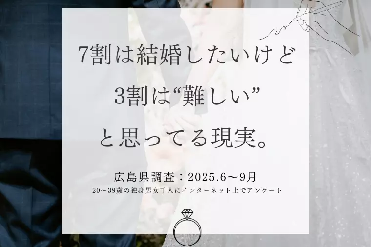 広島の結婚相談所「ライフデザインラボ青い鳥」の仁禮です😊きのうの中国新聞デジタルの記事。(紙版もとっているのに、気づけばほぼデジタルで読んでいます…)広島県が実施したアンケートで、20〜30代の7割が「結婚したい」と答える一方、そのうち3割は「実現は難しい」と感じている――という内容でした。理由としては「出会いの場がない」「自由を失いたくない」。そして「SNSで完璧な人ばかりを見て、自分には無理だと思ってしまう」など。📊結婚への意欲はあっても、一歩を踏み出せない若者の現状が浮かび上がる記事でした。つづきはこちら https://x.gd/zT59j ◆「ライフデザインラボ青い鳥」では、婚活プロデュース・成婚退会後まであらゆるサポートとサービスを用意しています広島で婚活するなら!ライフデザインラボ青い鳥◆まずは無料相談☆こちらのお問い合わせフォームからメッセージをお願いいたします〈無料相談・お問い合わせフォーム〉こちら➡ https://lifedesignlab-aoitori.com/contact/ 〈公式LINEからもお問い合わせできます☆登録するとキャンペーンなどお得な情報が配信されます〉公式LINE➡ https://lin.ee/GJuIZwx 〈ライフデザインラボ青い鳥HP〉公式HP➡ https://www.lifedesignlab-aoitori.com/