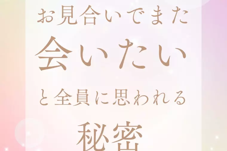 いつか理想の人に会った時に選ばれる自分になるために実践してほしい内容です✨お見合いは、相手の人柄を知ることや自分とのフィーリングを確認したりですがせっかくなら自分を選んでいただきたいし自分のスキルを磨くチャンスでもあります。ぜひ、実践していきましょう🎵入り口での待ち合わせ笑顔で相手の顔を見て「〇〇さんですか?はじめまして〇〇です」「お会いできることを楽しみにしていました!」このように言われたら嬉しいです。第一印象は、しばらくの期間残ります。鏡の前で練習しましょう「話し方」で決まる話し方や声のトーンが印象は大事です。話すスピードや声の出方で緊張しているのかな?優しく穏やかな感じ!など感じることができます。早口にならずに相手のペースに合わせて話しましょう目の前の人をよく見ることで好みでなかったとしても相手のいいところを見つけることができます。せっかく時間を作ってお見合いに来たので『今』を大切にすることです。(気持ちの切り替えです)どんな人でも必ずいいところがあります。例えば「肌が綺麗ですね」「そうですか?寝不足なんですけど」など会話が広がり日常のことを聞けたりします。褒められたら嬉しい💛お見合いの中で「〇〇さんは、ここまで電車で来たのですか?」お見合い中にお名前をできれば3回呼びましょう!名前を呼ばれると自分を見てもらえて相手のことも知りたくなります。お相手の話したことに共感の気持ちを伝えていきます。共感の言葉とは、「それは大変でしたね」「よくわかります!」表情も合わせましょう。共感してもらえると話が合うと感じるし話を聞いてもらえて嬉しかったという印象になります。「おすすめのカフェに行ってみたいです!よかったら今度一緒に行きませんか?」会話の流れで自然に伝えましょう🎵「今日お話がとても楽しかったです。もっと〇〇について話したいです」お相手の様子をよく見て!次回につながる約束を伝えましょう✨ 婚活のご相談はこちらから