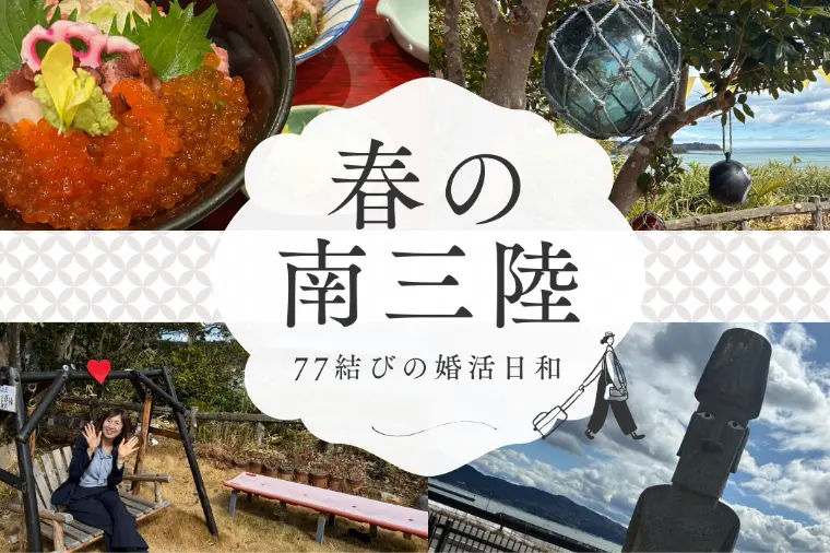 こんにちは、仙台・宮城の結婚相談所「77結び~ななむすび~」コンシェルジュの金子です。先日、七十七銀行志津川支店のお客さまとのご縁で、南三陸へ伺う機会がありました。せっかくなので少し足を延ばして、恋人たちの聖地といわれる「北の恋人岬」に立ち寄ってみることに🌿入口に立ったときは正直、「え…?ちょっと寂しい感じ?」と少し思ってしまったのですが(笑)波音を聞きながら小道をゆっくり登っていくと、目の前に広がったのは一面のキラキラ光る青い海🌊木々には南三陸らしい浮き球ガラスが吊るされていて、写真を撮ると、まるで素敵なリゾート地のような雰囲気。岬には二人乗りのブランコもあり、海を眺めながらゆっくり腰かけてひと息。潮風に包まれていると、心がふっと軽くなるような気持ちよさでした。デートで訪れたら、きっと自然と会話も弾みそうですね。実はこの岬へ向かう前に、南三陸さんさん商店街にも立ち寄り、海鮮丼をいただきました。南三陸の海の幸がふんだんに盛られた贅沢な一杯。思わず笑顔になる美味しさで、大満足のランチタイムでした🐟✨岬を楽しんだあとは、街のシンボルともいえるモアイ像ともご対面。南三陸とモアイ像のつながり、皆さんご存じでしょうか?ぜひ調べてみると、ちょっと面白い発見がありますよ。ここでひとつクイズです。南三陸には「目」が入った珍しいモアイ像が立っていますが、実は世界で“目の入ったモアイ像”は2体しかないんですって。さて、もう1体はどこにあるでしょう…?皆さんの好奇心を少しくすぐったところで、今回のブログはこのあたりで。・・海風が心地よくなるこれからの季節、ぜひ南三陸へ小さな旅に出かけてみてくださいね🌊美しい景色や美味しい海の幸に触れる時間は、自然と心をほぐし、お互いの距離をぐっと近づけてくれそうです。77結びは、これからも皆さまのご縁をそっと応援していきます😊👉77結びがデートのプランニングもお手伝いします🎶まずはお気軽にご相談くださいね。無料面談💘 https://77musubi.77humandesign.co.jp/ calendar 「77結び~ななむすび~」は、七十七グループが運営する仙台の結婚相談所です。公式HP💘 https://77musubi.77humandesign.co.jp/ 公式Youtube💘 https://youtu.be/j0yuA7YZOgo 認定婚活カウンセラーによる無料相談実施中!お申し込みはこちらからお気軽に😊💕無料面談💘 https://77musubi.77humandesign.co.jp/ calendar 「出会い、結婚その先も、ずっと」77結び~ななむすび~presentedby七十七ヒューマンデザイン