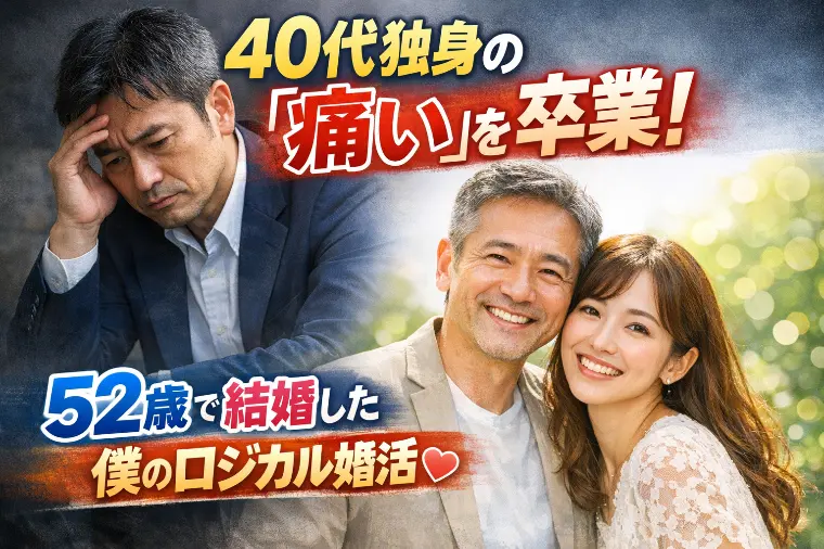 40代で独身。ふとした瞬間に「自分は周りから『痛い』と思われているのではないか?」という不安がよぎることはありませんか?「清潔感には気を使っているつもりだが、同年代の女性からは相手にされない」「若いつもりでいたが、20代・30代の輪に入ると浮いてしまう」といったリアルな壁。さらに、婚活市場では「40代男性はターゲット外」と厳しい現実を突きつけられ、どう動けばいいのか立ち止まっている方も多いはずです。焦って空回りし、さらに「痛い」と思われる……そんな負のスパイラルに陥っていませんか?そのお気持ちは、痛いほどよく分かります。実は、私自身も52歳までずっと独身でした。「まだ大丈夫」と自分に言い聞かせながらも、心のどこかでは「もう手遅れかもしれない」という孤独感と戦う日々。友人たちが親になり、家族の話題で盛り上がる中で、自分だけが取り残されていくような感覚。あの時に感じた「痛み」や「焦り」は、今でも忘れることはできません。しかし、そんな私でも20歳年下の妻と出会い、結婚することができました。50代からでも人生を好転させることは可能です。40代のあなたは、まだ全く手遅れではありません。40代男性が「痛い」と言われる婚活から脱却し、成婚を勝ち取るためには、感情論ではなく**「ロジカル婚活(ロジ婚)」**へのシフトが必要です。ビジネスで培った分析力を婚活に応用し、戦略的に進めることで、成婚への確度は飛躍的に高まります。まずは自分という商品を客観的に見つめ直すことから始めましょう。•変えられることへの投資:清潔感、髪型、ファッション、コミュニケーションスキル(傾聴力や質問力)は、努力次第で今すぐ改善できる「市場価値」です。•変えられないことの強み化:40代という年齢は変えられませんが、それを「落ち着き」や「精神的・経済的安定感」として戦略的にアピールする「見せ方」が重要です。「自分が会いたい人」だけでなく、「自分を求めている人は誰か」を分析します。ターゲットとする女性が、結婚相手に何を求めているのか(安心感、包容力、対等なパートナーシップなど)を予測し、自分のどの強みがそのニーズに合致するかを考えます。ただの事実の羅列はNGです。具体的なエピソード(例:趣味のこだわりや休日の具体的な過ごし方)を交え、「この人と会ったら楽しそう」というポジティブな未来をイメージさせることがポイントです。「なんとなく」デートを重ねるのは時間の無駄です。回数ごとに「時間・深さ・場所」を段階的に変化させ、お互いの価値観や人間性を多角的に確認していきます。独自の「判断基準リスト」に照らし合わせ、次のステップに進むべきかを論理的に判断します。40代からの婚活は、がむしゃらに動いても結果は出ません。必要なのは、自分の市場価値を理解し、正しいターゲットに、正しい方法でアプローチする「戦略」です。「痛い」と言われる自分から、一歩抜きん出た「選ばれる自分」へ。T&H(太郎と花子)では、20歳差夫婦である私たちが、それぞれの視点からあなたの婚活をロジカルにバックアップします。まずはあなたの現在地を分析することから始めませんか?一人で悩まず、ぜひ無料相談をご活用ください。