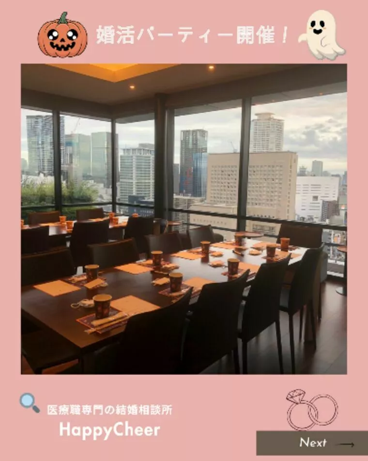 10/19(日)に大阪市内のタワマンスカイラウンジでの婚活パーティーを開催。今回は男性8名・女性9名がご参加くださいました😊美味しいお食事とお酒を楽しみながら、最初は少し緊張していた皆さんも、夜景🌃をバックに笑顔でトークが弾んでいました✨なんと今回は…10組がマッチング💕素敵なご縁がたくさん生まれました!次回の開催もどうぞお楽しみに🥂#婚活#婚活パーティー#大阪婚活#出会い#恋活#夜景婚活#ハロウィンパーティー https://www.instagram.com/happycheer078/profilecard/?igsh=aGszbGdycWNkZjJk
