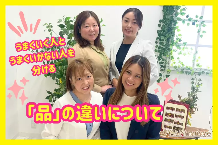 この記事は、婚活がうまくいく人とうまくいかない人を分ける「品」の違いについてお話しします。全国のIBJ加盟店の中でも圧倒的な入会数・会員数・成婚数・受賞歴を誇る、続々とご成婚が誕生するリーズナブルな結婚相談所キャンマリアージュ成婚カウンセラーの本庄涼です!年が明けると、毎年多くいただくご相談があります。「今年こそは結果を出したい」「今年こそは本気で取り組みたい」そんな前向きな気持ちと同時に、どこか焦りや迷いを抱えている方もとても多い印象です。新しい年の始まりは、これまでの婚活を振り返るタイミングでもあります◎「なぜうまくいかなかったのか」「何が足りなかったのか」そう考え始める方も少なくありません。考えて努力もしているはずだけど、どうしてもうまくいかない・・・。その場合、実はもっと手前のところでつまずいている可能性があります。婚活を長く見ていると、年齢や条件以前に「この人は結婚生活が想像できないな…」と感じる瞬間があります。それは、性格の問題でも、魅力がないからでもありません。理由はとてもシンプルで、品がないからです。ここで言う「品」とは、育ちや家柄の話ではありません人と向き合うときの姿勢・態度・感情の扱い方のことです!品のある人は、いろんな意味でとても静かです◎でも、その静かさは「我慢」ではなく、安定感から来ています。・相手を下げずに自分の考えを伝えられる・過去の交際や元パートナーの悪口を言わない・不安や不満があっても、感情をそのままぶつけない・「フィーリングが合わない」のか「相手が悪い」のか、きちんと分けて考えられる・連絡や態度にムラがなく、相手を雑に扱わないこうした人は、一緒にいて「気を張らなくていい空気」を作ります。結婚生活で本当に必要なのは、ドキドキよりも、この心が荒れない感覚です。一方で、婚活がうまくいかない人の多くは、無意識のうちに品を削る行動を重ねています。・「正直だから」と言って配慮を放棄する・自分の不安や寂しさを相手にぶつける・条件や立場で人を上下に見る・被害者意識が強く、振り返らない・説明もなく距離を置く、態度が急に雑になるこうした行動は、最初は見えにくくても、距離が縮むほど相手に伝わります。そして相手は、「この人と一緒にいると、心がすり減りそう」と感じて、静かに離れていくのです。結婚は、感情をぶつけ合う関係ではありません。感情を扱い合う関係です。疲れているとき不安になったとき意見が食い違ったときこういった素の自分が出てしまう状況で、・相手を壊さないか・関係を雑に扱わないか・自分の感情に責任を持てるかここに、その人の「品」が表れます。交際初期は取り繕えても、関係が長くなれば必ず素が出ます。だからこそ、品のない人は最終的に選ばれにくいのです。「優しい人」よりも「条件の良い人」よりも「一緒にいて、心が荒れない人」それが、結婚に向いている人です。そして品は、才能でも特権でもありません!!・相手をどう扱っているか・自分の感情をどう扱っているかそこを少しずつ整えていけば、誰でも取り戻せるものです◎婚活がうまくいかないとき、条件を足す前に、まずは「自分の在り方」を見直してみてください。年末年始は婚活を始める方がグッと増えます!今からスタートすれば、2026年に成婚退会することも十分可能です♫今年こそ・・・と思っている方は、まずはご相談だけでもお越しくださいね☆!新春婚活キャンペーン!特典:①本入会時の初期費用30,000円OFF! ②お見合い申し込み数50件追加期間:2026年1月1日(木)~1月31日(土)まで※公式サイトの婚活無料相談予約フォームからご予約をいただいた方に限ります※キャンペーンを使用したい旨を婚活無料相談までに必ずお伝えください※キャンペーン適用条件等の詳細は婚活無料相談時にご説明いたします※キャンペーン期間までに本入会をいただいた方に限ります※その他キャンペーン・お得なプラン・公式サイトベストレート保障は併用不可となります 新春婚活キャンペーンの詳細はコチラ⭐︎待っているだけでは運命の方は現れません!!しっかり行動していきましょう♫★・・・・・★・・・・・・★・・・・・★婚活のプロである成婚カウンセラーの婚活無料相談にお気軽にいらしてくださいね♪★公式サイトからのご予約が一番お得★公式サイト婚活無料相談予約はコチラ★・・・・・★・・・・・・★・・・・・★全国対応の結婚相談所としてオンラインでのサービス提供をフルに活用し、全国の20代30代40代の会員様を中心に続々と幸せなご結婚へと導いております! ホームページ キャンマリアージュは、名古屋・新宿・浜松に実店舗を構え、IBJ加盟店の中でも全国トップクラスの成婚実績を誇るリーズナブルな結婚相談所です♪キャンマリアージュ公式サイト LINE キャンマリアージュLINE公式アカウントでは、無料婚活診断や特別クーポンなど大変お得で有益な限定コン